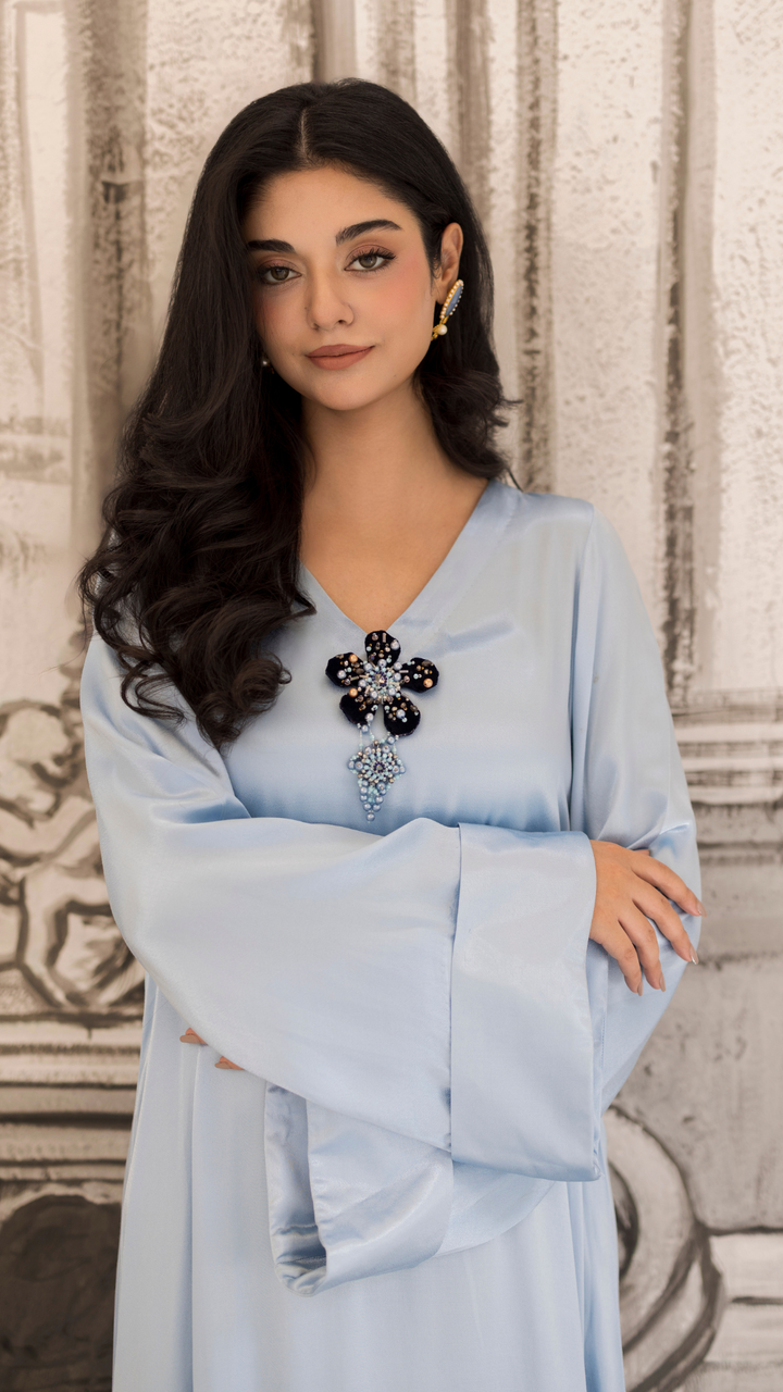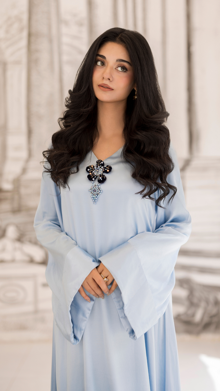 SILHOUETTE: Flowing, floor-length Kaftan with graceful drape.
